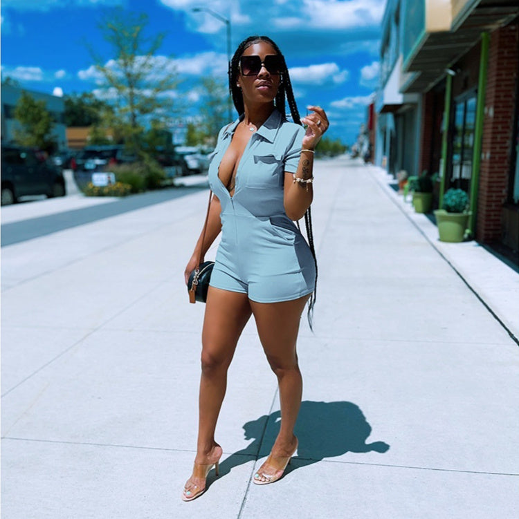 Women's Zipper Comfortable Workwear With Pocket Jumpsuit
